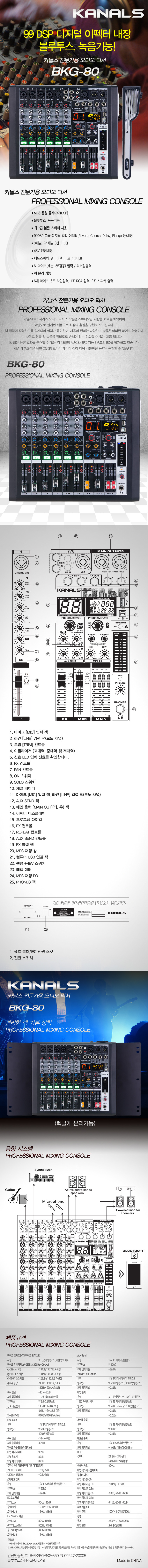 HOME > 전체상품 > KANALS(카날스) BKG-80 8채널 오디오믹서 블루투스 오디오인터페이스
